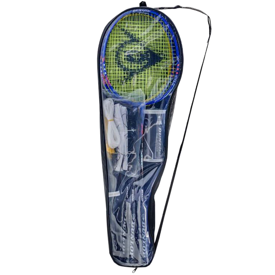 Zestaw do badmintona Dunlop to świetna propozycja na aktywne spędzanie czasu zarówno przez dzieci jak i dorosłych. W zestawie znajdują się dwie stalowe rakiety o izometrycznym kształcie główki. Dwie lotki umożliwiają komfortową rozgrywkę. Całość zapakowana w praktyczny pokrowiec.  Co więcej w zestawie znajdują się: siatka do badmintona, odciągi, śledzie oraz słupki składne z trzech elementów, które pozwolą na wydzielenie boiska do gry niemal wszędzie.